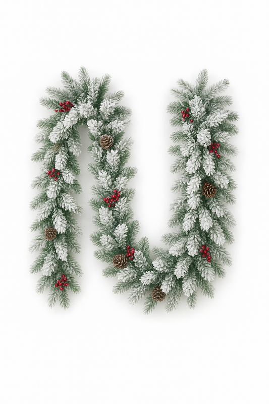 Premium snežna božićna grilanda sa šišarkama i crvenim bobicama 2.7m
