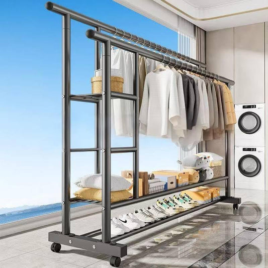 Garderober na točkićima 1.5 m – metalni stalak za odeću sa duplim stalkom i policom