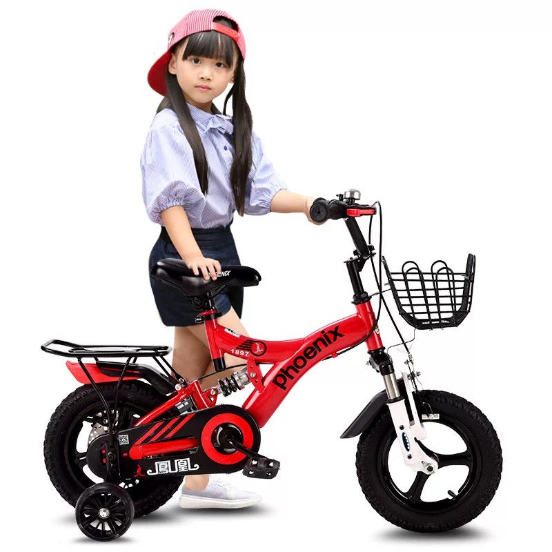Dečiji bicikl 12" je za decu koja tek uče da voze bicikl. Prečnik točka iznosi 12 inča. Bicikl ima pomoćne točkiće koji pomažu detetu da održava ravnotežu tokom učenja vožnje i omogućavaju mu da stekne neophodno samopouzdanje kako bi dete moglo samostalno da vozi. Opremljen crnom korpom postavljenom na upravljač. Podesiv upravljač i sedište omogućavaju