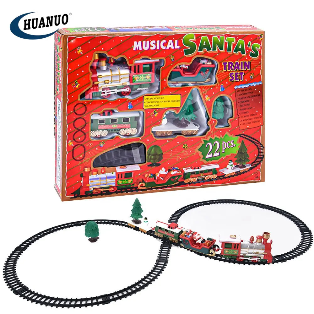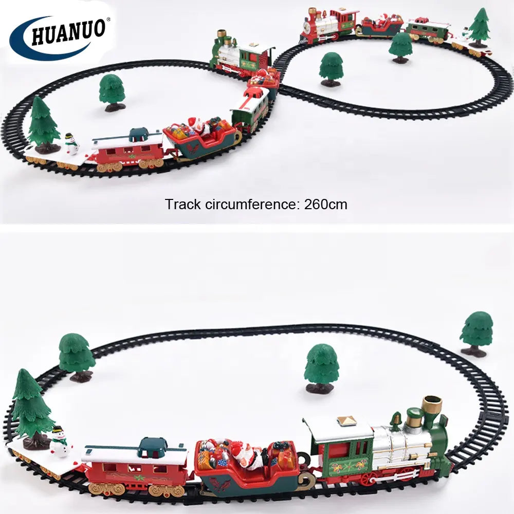 Novogodišnji vozić sa vagonima šinama i novogodišnjim dodacima