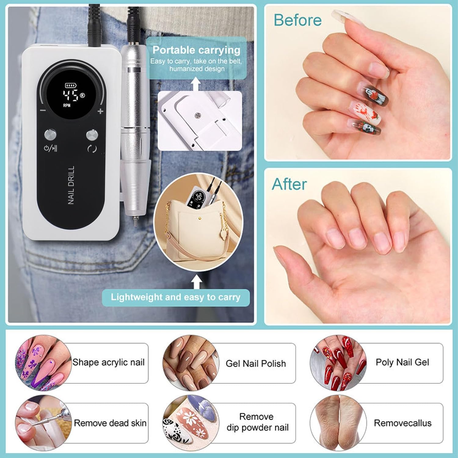 Snažna električna mašina za brušenje noktiju radi pri brzini od 45000 obrtaja u minuti, omogućavajući brzo i efikasno poliranje noktiju, štedeći vam vreme i trud.